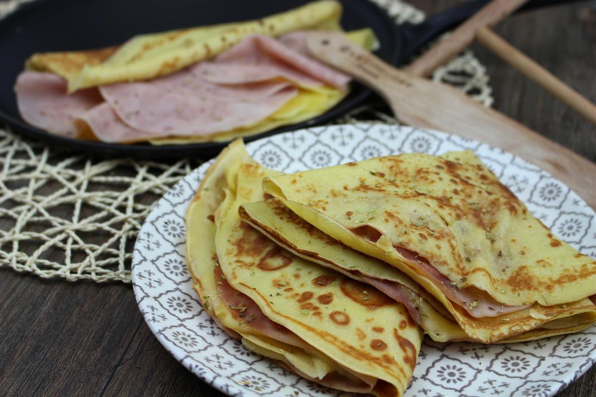 Facilísimos crepes salados rellenos de jamón cocido y queso sin lactosa