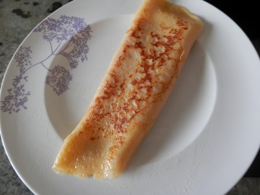 Añade a la plancha un poco de la masa, extiende bien por toda la superficie de la sartén.