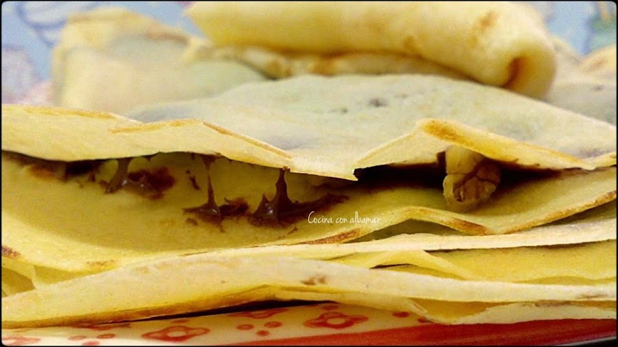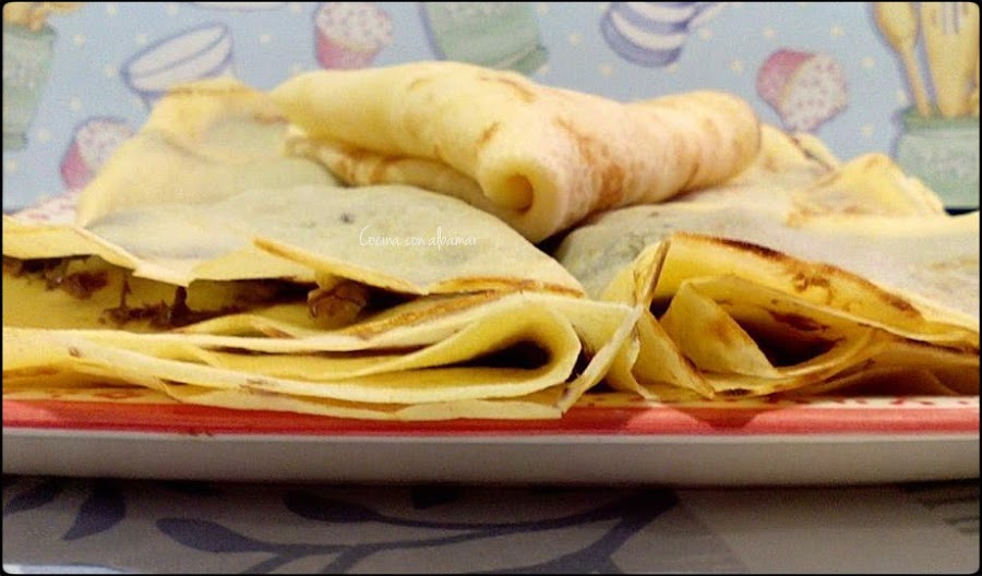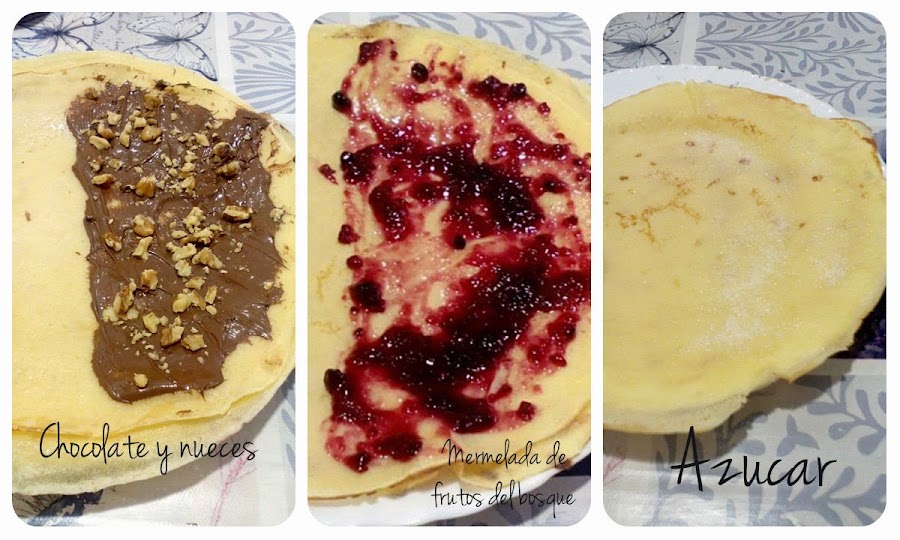 Poner en un plato llano y rellenar al gusto untando la mitad del crepe, luego doblaremos por la mitad y luego haremos un triangulo.