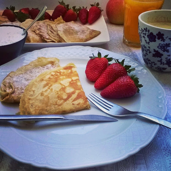 Todavía recuedo con gran aflicción y pena el día en que pedí creps en la terraza de aquel fatídico restaurante. Era verano, yo tendría unos 7 años y estaba acostumbrada a los maravillosos creps de desayuno dulces de mi madre. Pensaba, pobre ingenua, que los creps solo podían serlo dulces. Mi sorpresa fue mayúscula cuando me trajeron unos creps salados, cubiertos de una salsa de queso que me decepciono tanto como si me los hubieran servido flotando en agua de mar. Probablemente, ahora que ya me hago mayor me los comería de muy buena gana pero entonces no pude dar ni un segundo bocado. He probado creps salados muy buenos desde entonces pero mis favoritos siempre serán los dulces. Especialmente y quizá por nostalgia, los creps con mermelada.