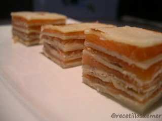 Esta receta nos la trae el blog Recetillas de Mer, y es una Milhojas rellena de salmón ahumado y queso a las finas hierbas, una combinación perfecta. Muy rápida y fácil de hacer. Perfecta para una cena ligera o como entrantes en una comida con invitados. Servidas en pequeñas porciones son geniales como canapés. Ya no hay excusa para quedar bien con los invitados, métete en la cocina, ¡qué no cuesta nada!
