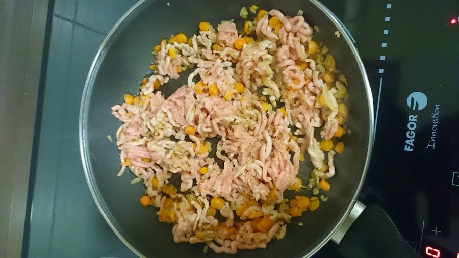 - 250 g. de carne picada (yo puse mezclada de pollo y pavo)