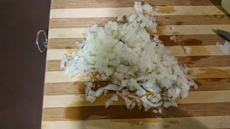 Ahora procederemos a preparar el relleno de los crepes, cogemos la cebolla y la picamos muy finita,