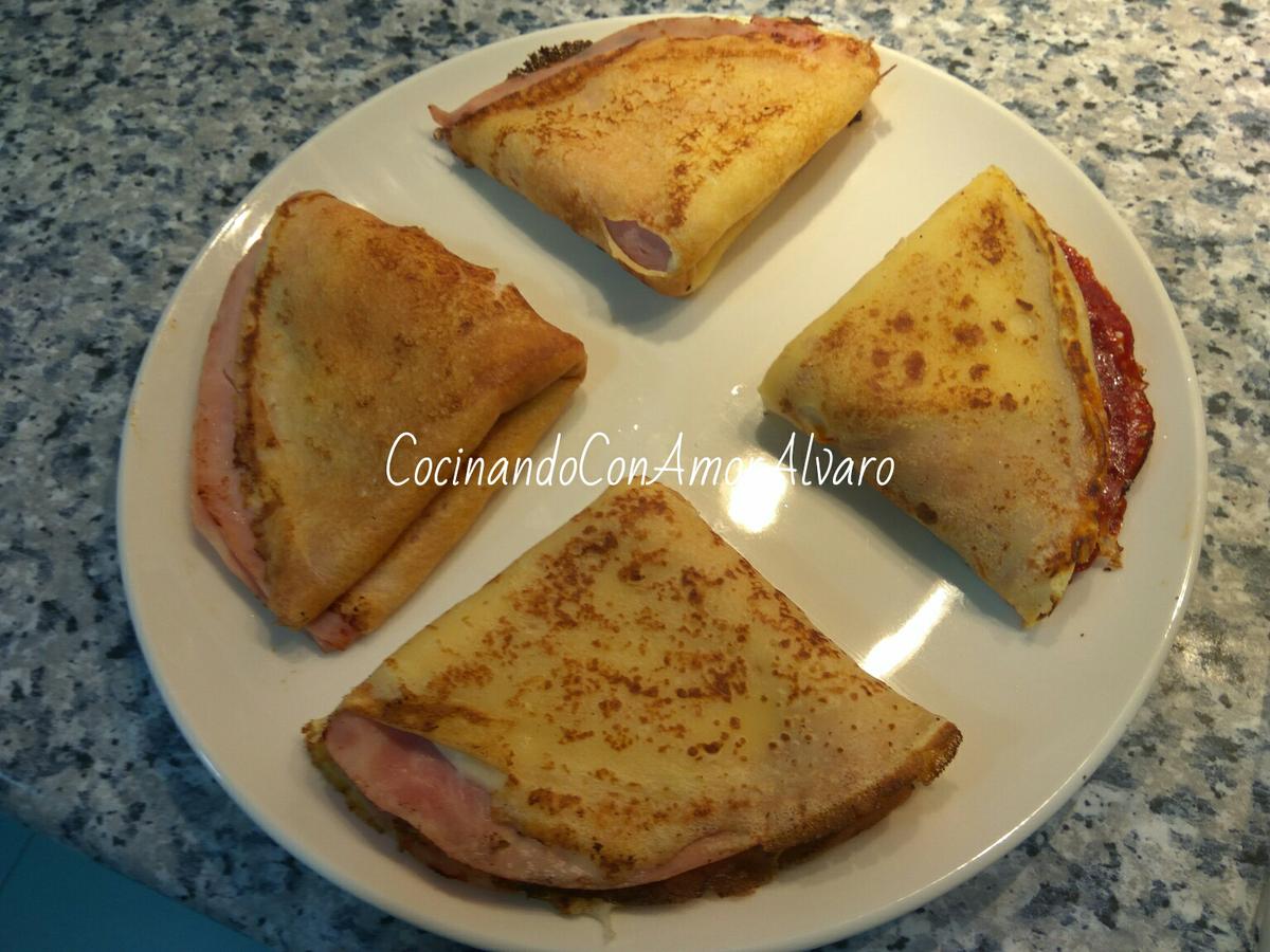 Una vez listos, rellenamos desde el centro del Crepes, poniendo una loncha de jamón de York y la loncha de queso.