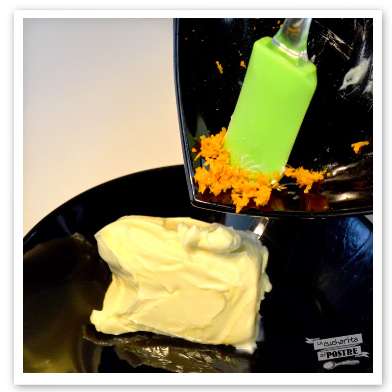 1. Mezcla la mantequilla a temperatura ambiente con la ralladura de naranja.