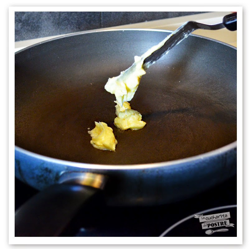 7. En una sartén caliente, pon un poco de la mantequilla con naranja.