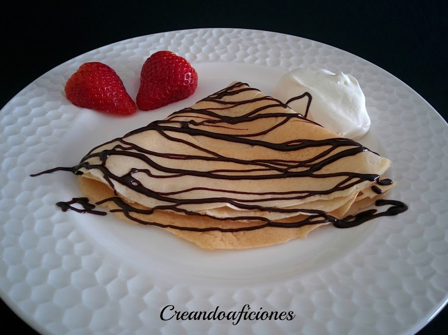 Los crepes como ya sabéis es un postre rico y fácil de hacer. Cuando hagáis la masa es mejor dejarla reposar, pero la podéis hacer directamente. Con estos ingredientes dan para 6 crepes porque yo he utilizado una crepera de 29 cm de diámetro, que es el premio que me dieron en la web de cocina Cookpad, por un postre de navidad, pero podéis utilizar una sartén y si es más pequeña salen muchos más crepes. Empezamos.