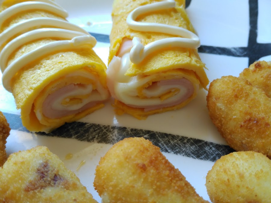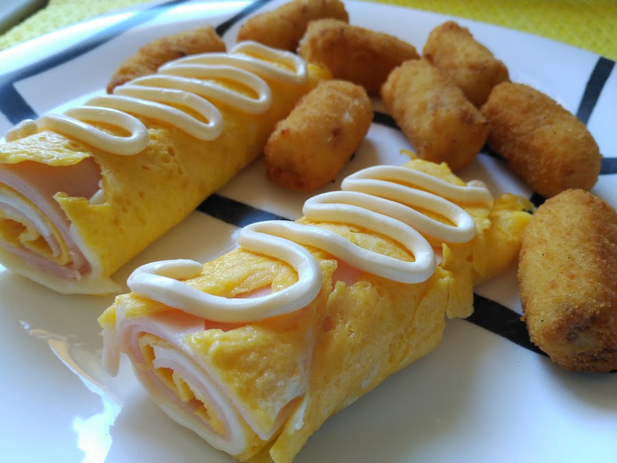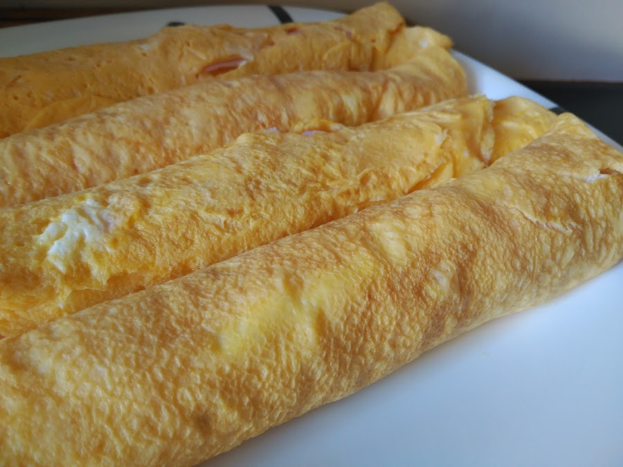 - Enrollamos y seguimos haciéndolo igual con el resto de huevo batido.
