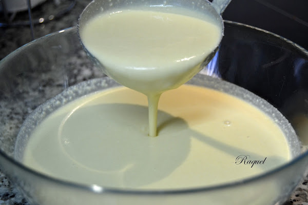 Batimos los huevos, con la mantequilla derretida, la leche, la harina y la sal hasta que este bien mezclado y no queden ningún grumo yo últimamente lo hago con la batidora y queda perfecta.