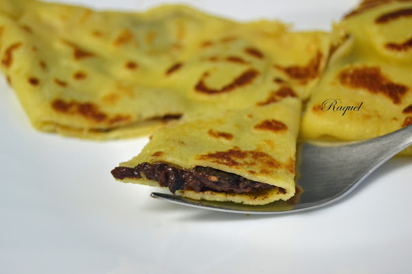 Hace cosa de un par de años probé por primera vez un crep de tipo salado, fue un día que después de una tarde de compras y un paseo entramos a cenar a una creperia, no sabia si me iba a gustar pero la verdad es que me encanto, recuerdo que en la pared con letras bien grandes estaba la receta de los creps yo le hice una foto con el móvil y después lo escribí en una pizarra de mi nevera, desde entonces esta ahí y siempre hacemos esta receta, bueno rectifico hace esta receta mi hija ella es la chef que los prepara y le salen de muerte, para ella siempre los hace solo con quesos pero no sabéis cuantas variedades le mete, para mi y para mi marido nos hizo estos con una morcilla que compramos en león y un gran queso el gran padano.