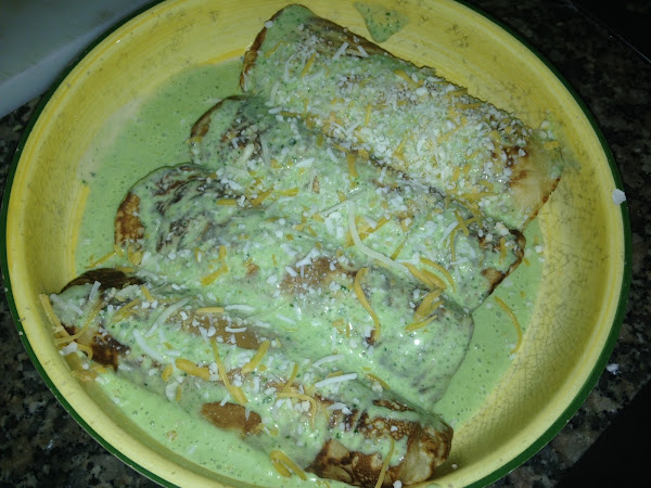 Ya solo nos queda rellenar cada crep y ponerlos en una bandeja de horno con la bechamel verde y un poco de queso por encima y a disfrutar! Espero que os guste, a mí me encantaron!!!