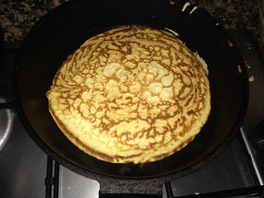 Como podéis apreciar en la foto a mi los creps me quedaron más gorditos de lo que debían. Se debe a que se me ocurrió improvisar y agregué una cucharadita de levadura química a la masa de los creps y engordaron al coger calor en el fuego. Esto es genial para las tortitas americanas, pero para los creps no lo recomiendo. Los creps deben ser finitos sobre todo si son para comer rellenos de algo salado como en este caso.