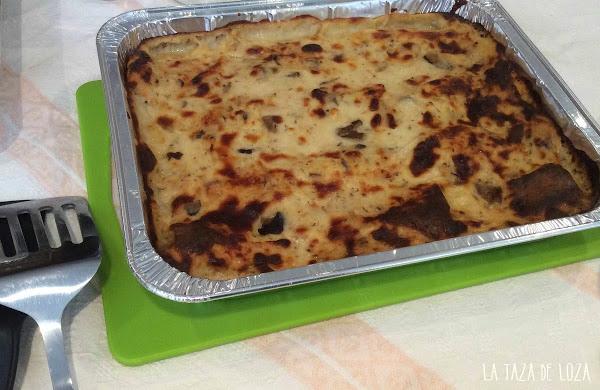 Se saca una o dos cucharadas de champiñones o setas (lo que hayamos preferido) y se mezcla con la salsa besamel para aromatizarla y darle más sabor.
