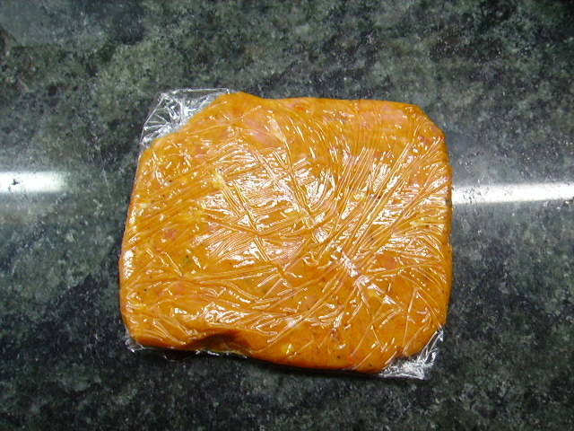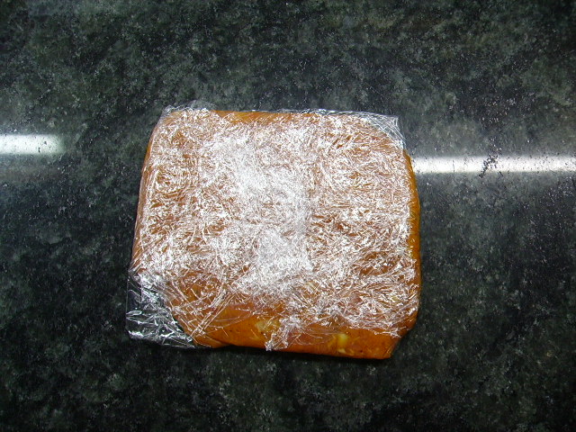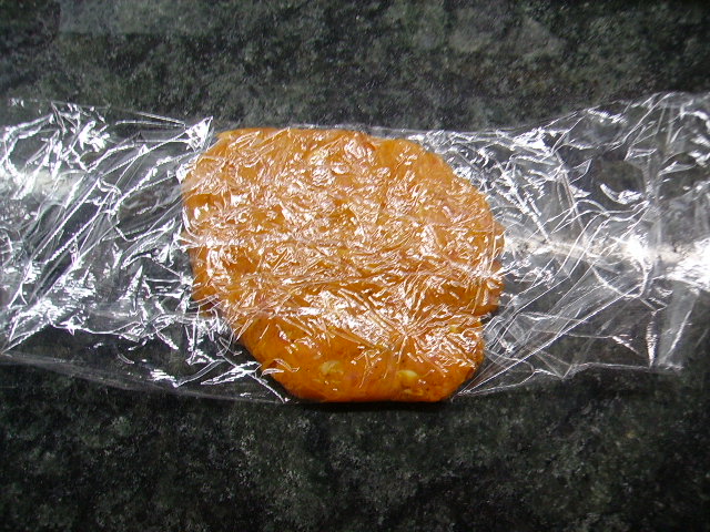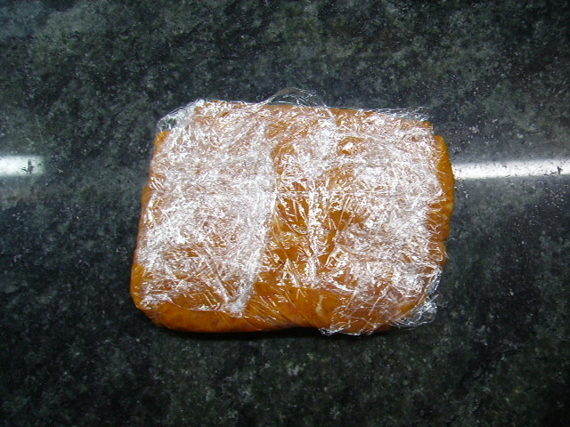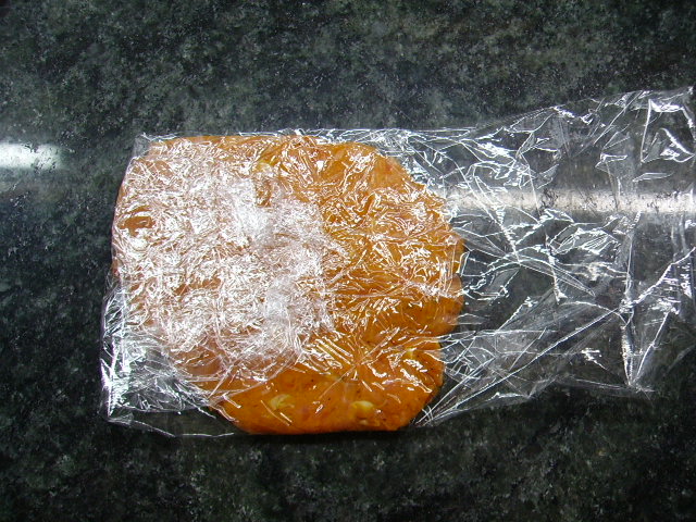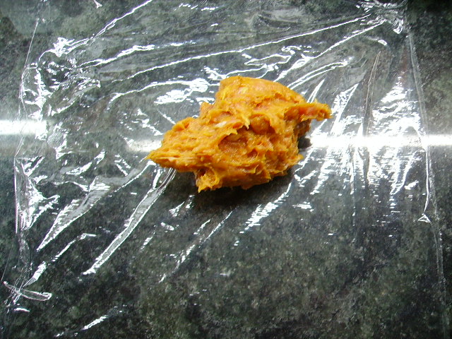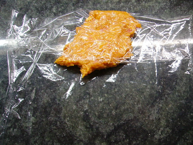 2.- Cortar cuadrados de papel film y colocar con una chuchara una porción de carne.