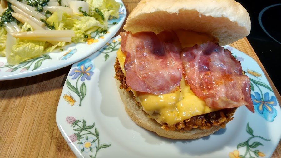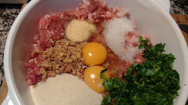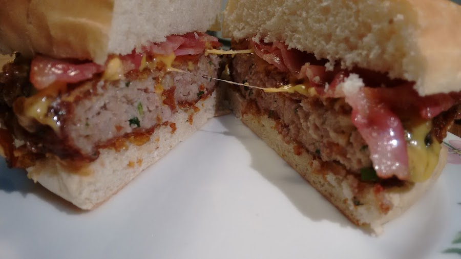 Lo ponemos todo en un bol y lo amasamos, el pan le incorporaremos mas ó menos según veamos la textura de la hamburguesa.