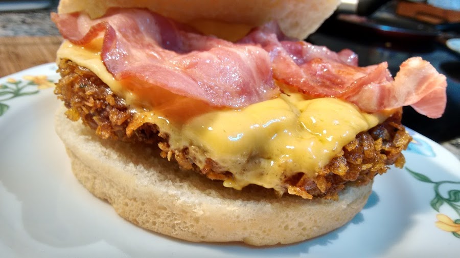Emborrizamos directamente las hamburguesas en los copos triturados.