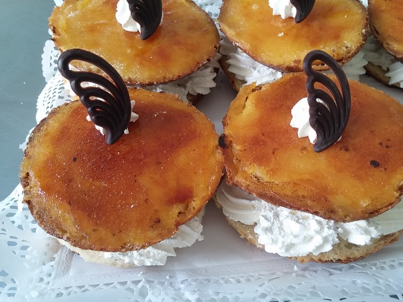 CRISTINAS DE NATA (crema de leche) Y YEMA TOSTADAIngredientes para 15 piezas de 70 gr. aproximadamente