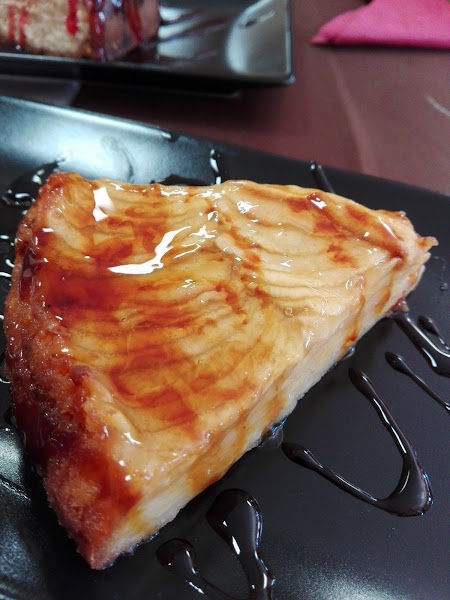 Tataki de vaca vieja: Lo que más me sorprendió fue ver este nombre en la carta "vaca vieja" ya que en cualquier otro lado le hubiesen puesto la etiqueta de buey sin dudarlo. Este plato estaba bastante bueno y creo que es al único que no le pudimos sacar un "pero". Y el precio era el mismo (si no recuerdo mal) que el tataki de atún.El problema llegó de nuevo una vez que llegamos a los postres. Pese a ser obligatorio por ley, carecían de un listado de alérgenos no tenían. Y os aseguro que cuando hay alguien que tiene que ir derecho a urgencias si se toma algo a lo que es alérgico hay que tener más luces y no decir "no creo que lleve nada".