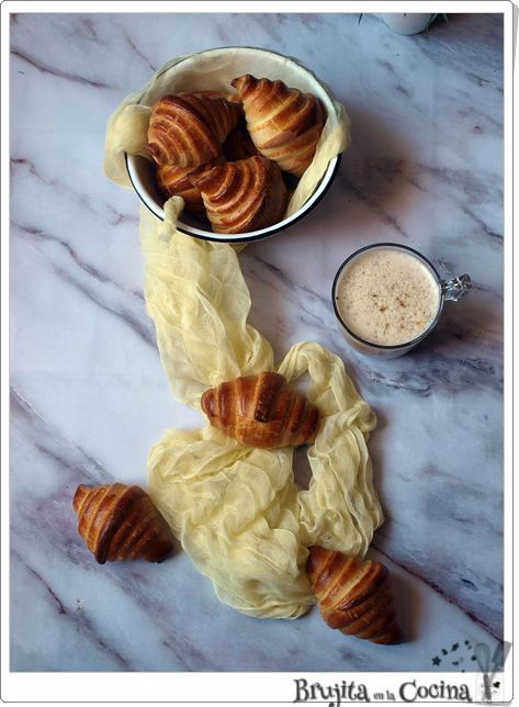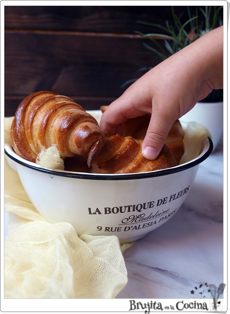 Están hechas con mascarpone, que es un tipo de queso crema pero muy graso así que para este tipo de masas le va genial. Es básicamente un brioche pero enrollado como croissant, los peques ayudan en la elaboración y luego les encanta comerlo, de hecho a veces hasta es difícil que se enfríen o incluso hacerles foto sin que aparezca una mano por ahí.