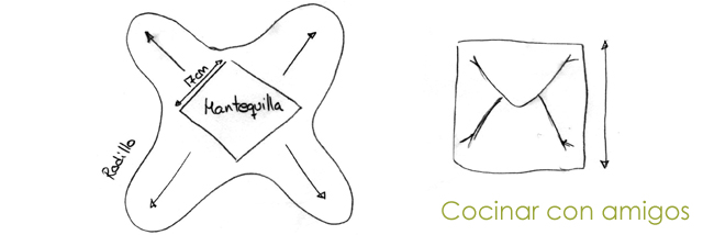 Sacamos la masa de la nevera, espolvoreamos harina en nuestra mesa y rodillo y estiramos la masa hasta formar un cuadrado uniforme de 24 x 24 cm. Una vez tengamos estas medidas estiramos las esquinas, verificando que no se pega la masa a la mesa. Colocamos la mantequilla en el centro y cerramos como un sobre (foto)
