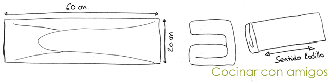 Pasado el último plegado dejamos reposar la masa durante 2 horas como mínimo. Después del reposo estiramos la última vez hasta dejar un masa de 54 x 25 cm., la cortamos en 6 partes y cada a cada parte le hacemos un corte transversal, cortar con un cuchillo sin arrastrar para que no se estropee la masa.