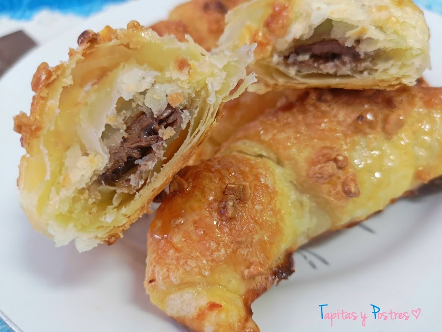 Lo malo de hacer el postre los sábados es que la familia ya lo espera con ansia jajaja. Eso de no traer nada dulce no gustó nada a la familia. Así que mirando a ver que había disponible, encontré una lámina de hojaldre y una tableta de chocolate. ¡No hacía falta mucho mas!