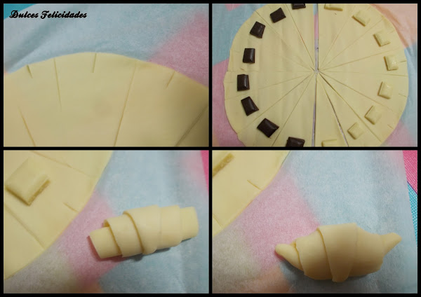 6. Enrollar comenzando por el lado grueso y unir los bordes haciendo los cuernos del croissant.