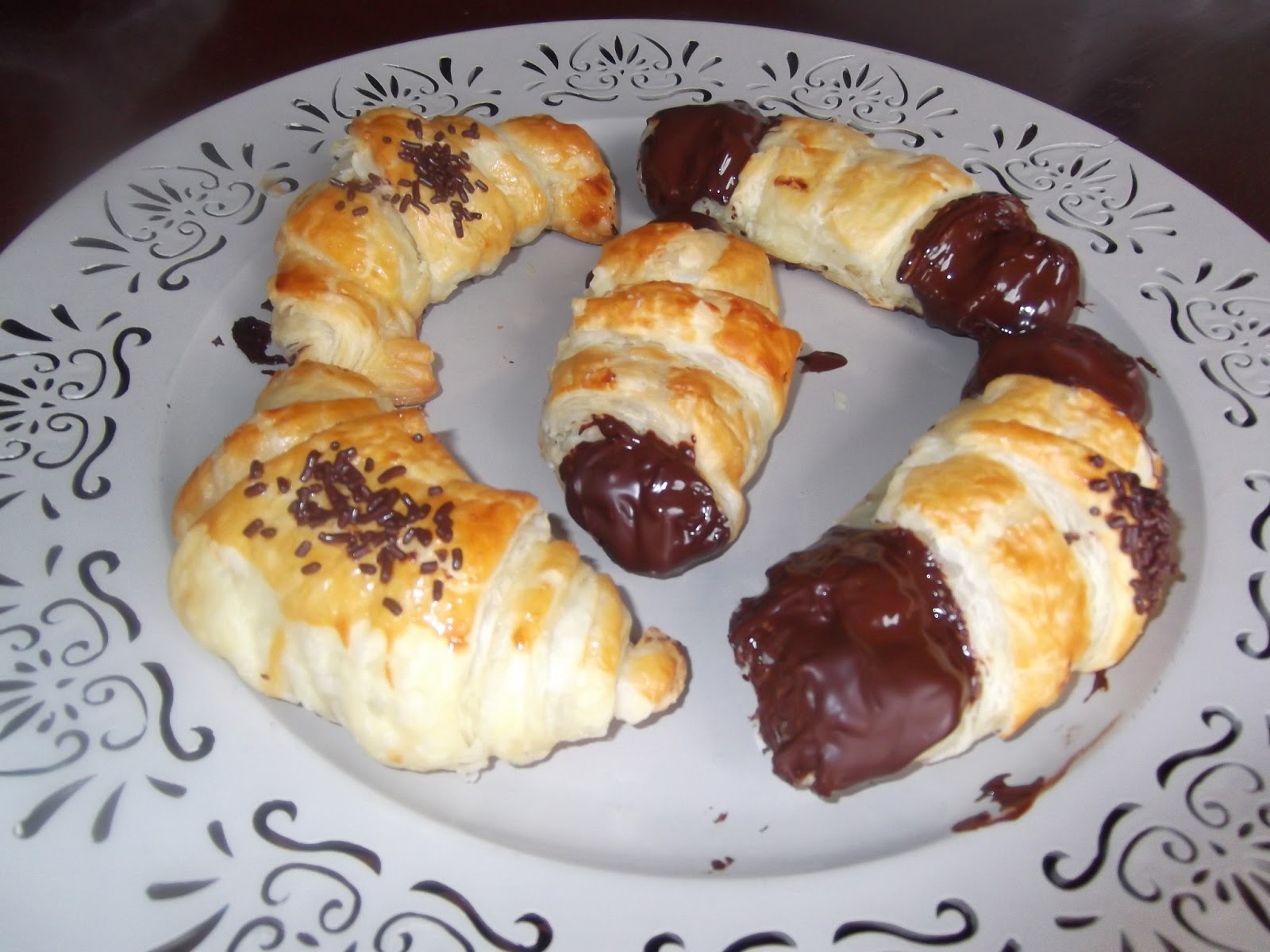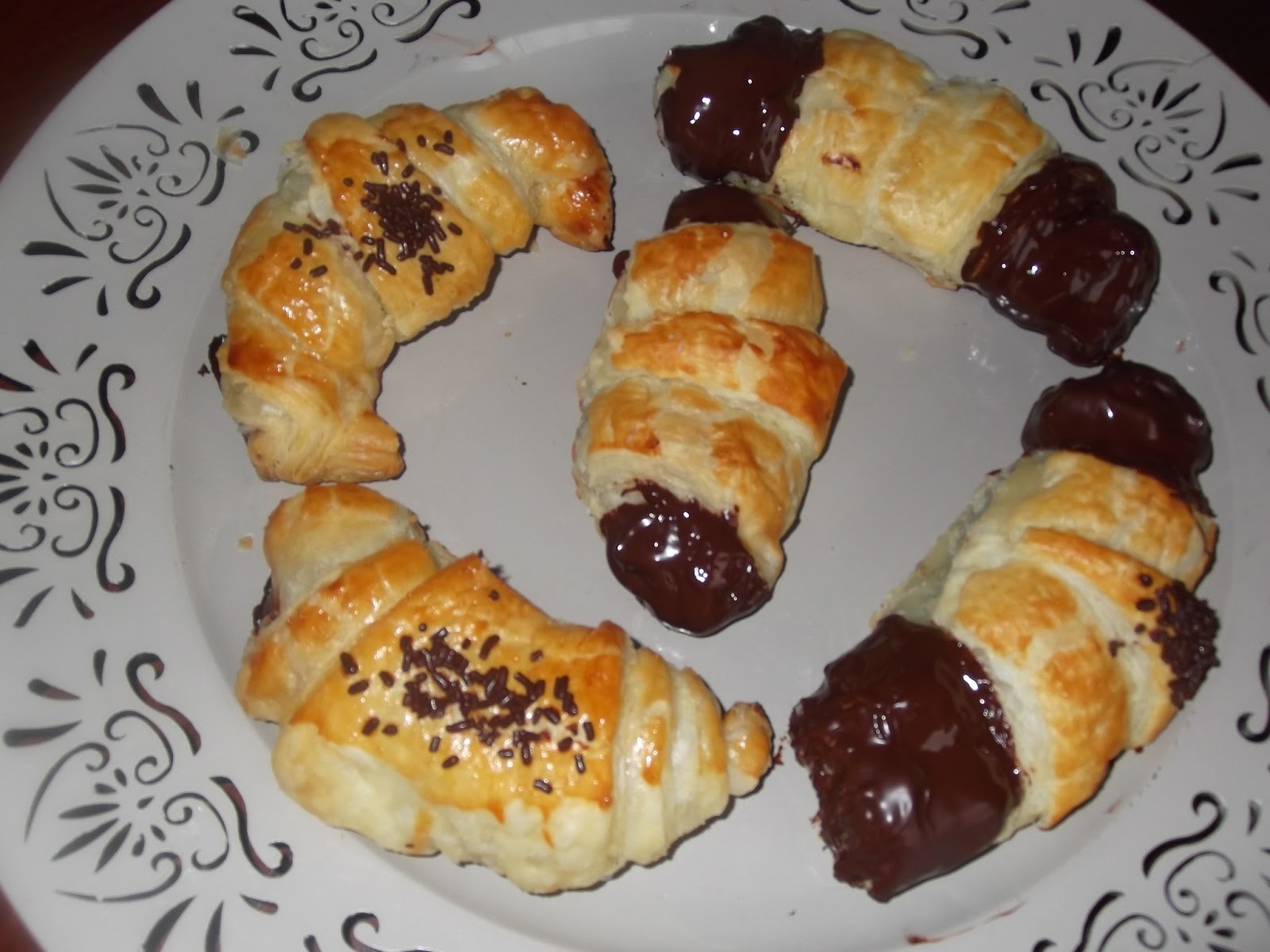 Precalientes el horno a 200º y mantienes los croissants durante 20 o 25 minutos. Mientras tanto vas fundiendo el chocolate fondant en el microondas. Una vez que sacas los croissants del horno, dejas que se enfríen y bañas los lados en el chocolate fondant. Los metes al frigorífico y ya están listos para comer, también puedes comerlos templados y así el chocolate está medio derretido y están riquísimos.