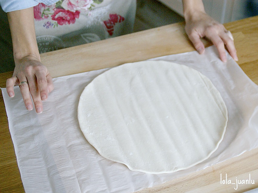 La masa de hojaldre si es rectangular mejor. Hoy vamos a utilizar una masa redonda sin gluten y sin lactosa.