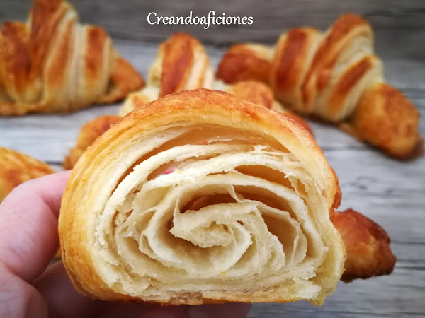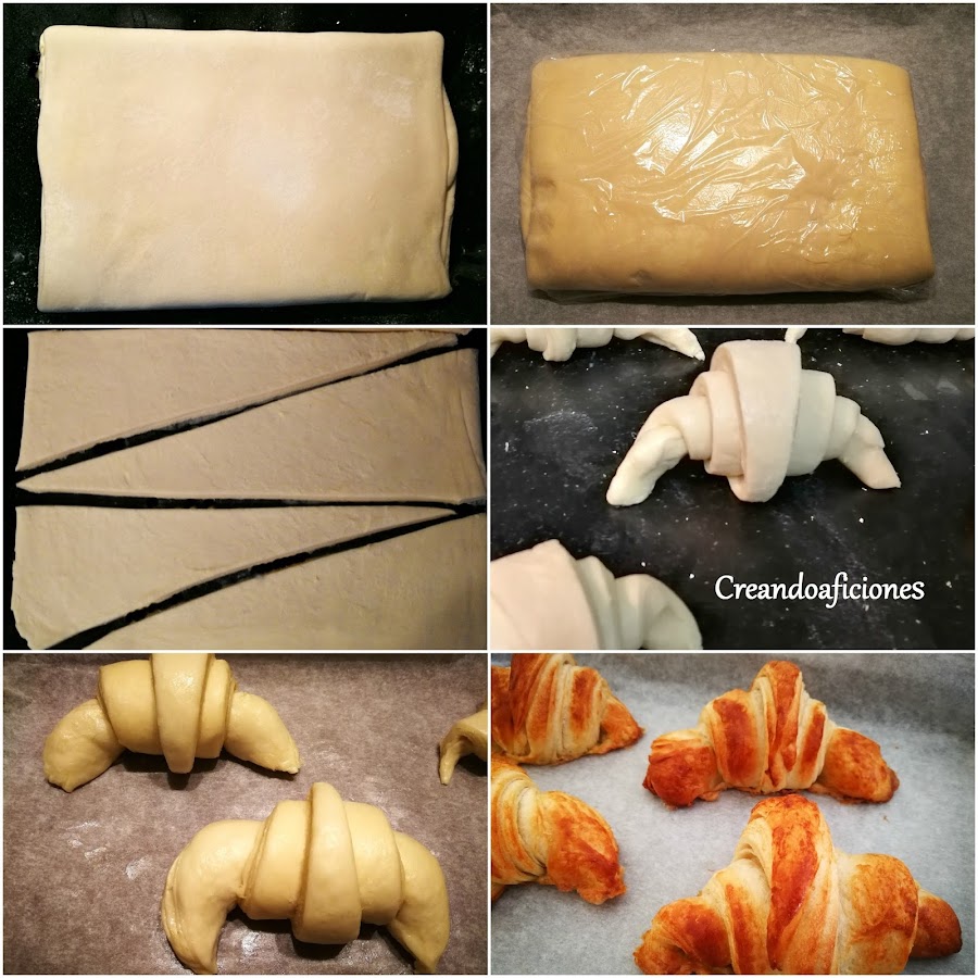 Tenia muchas ganas de hacer croissant caseros, pero tenia que encontrar un día con mucho tiempo para prepararlos y ya lo encontré y también la receta, que después de mirar muchos vídeos y ver paginas, elegí la web de cocinandoconcatman.com, esta muy bien explicado y los croissant riquísimos. Con las cantidades de esta receta salen unos 12-15 croissant y con el tiempo que lleva hacerlos, podéis congelar los que no vayáis a comer, justo antes del ultimo levado, en bolsas de plástico o papel film y el día que los vayáis a comer, lo sacáis la noche anterior y lo dejáis tapado dentro del horno con un paño por encima, para que leven y antes de hornearlos, los pintáis con huevo y los horneáis. La masa siempre tiene que estar fría, si vierais que cuando estiráis la masa sale mantequilla, meterla de nuevo en la nevera para que se enfrié, también podéis meterla en el congelador unos minutos. Empezamos.