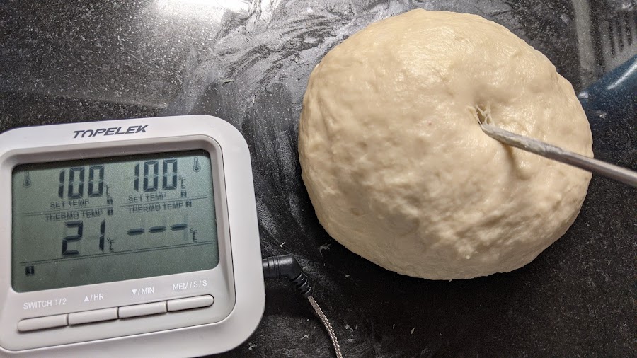 La temperatura de la masa no debe superar los 22 grados (si fuera necesario enfriar antes de seguir con el amasado)