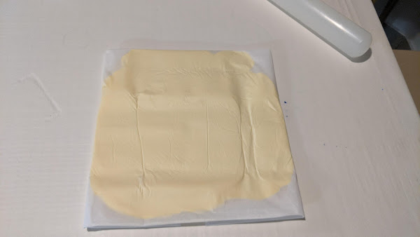 Estiramos con el rodillo formando un rectángulo y con la regla marcamos para delimitar triángulos idénticos