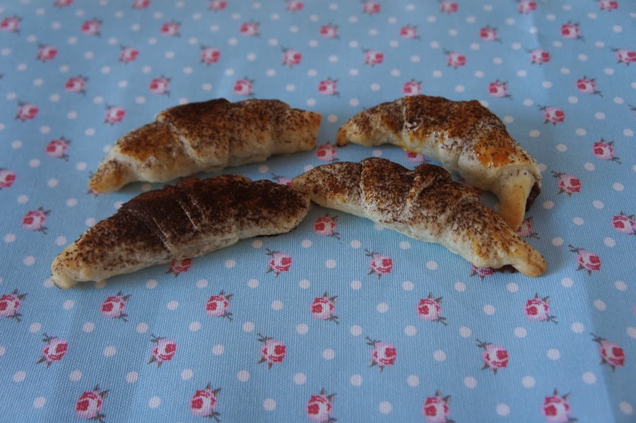 Además de patatillas, chuches y refrescos, me apetecía cocinar algo, pero que no llevase mucho tiempo. Al final me decidí por una receta super sencilla que he visto en un montón de webs y blogs, los croissants de nutella, y la verdad es que quedaron deliciosos.