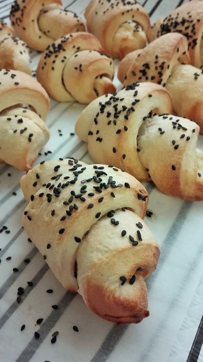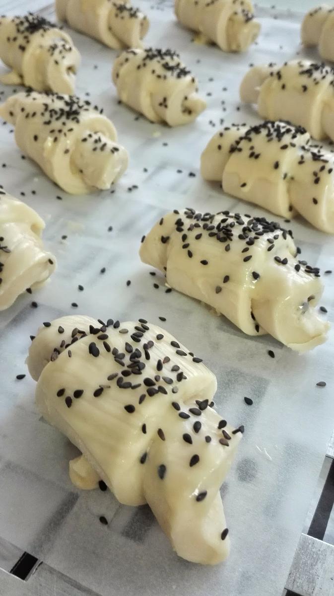 Los croissants de hoy no son muy dulces, mas bien son neutros para rellenar luego al gusto.