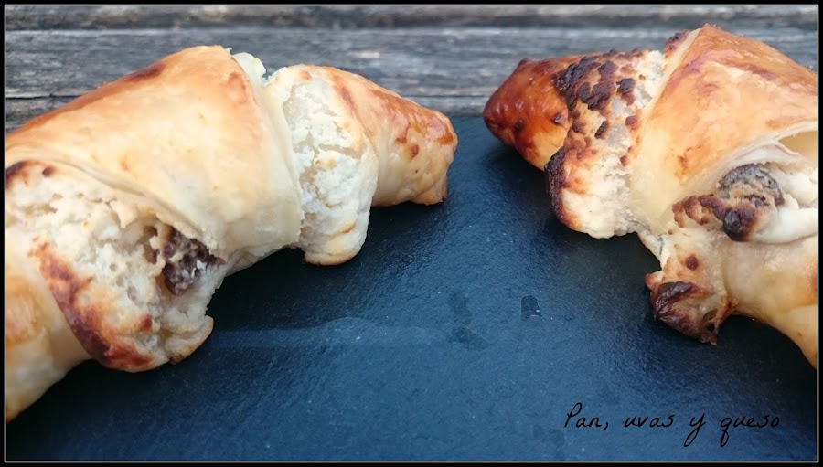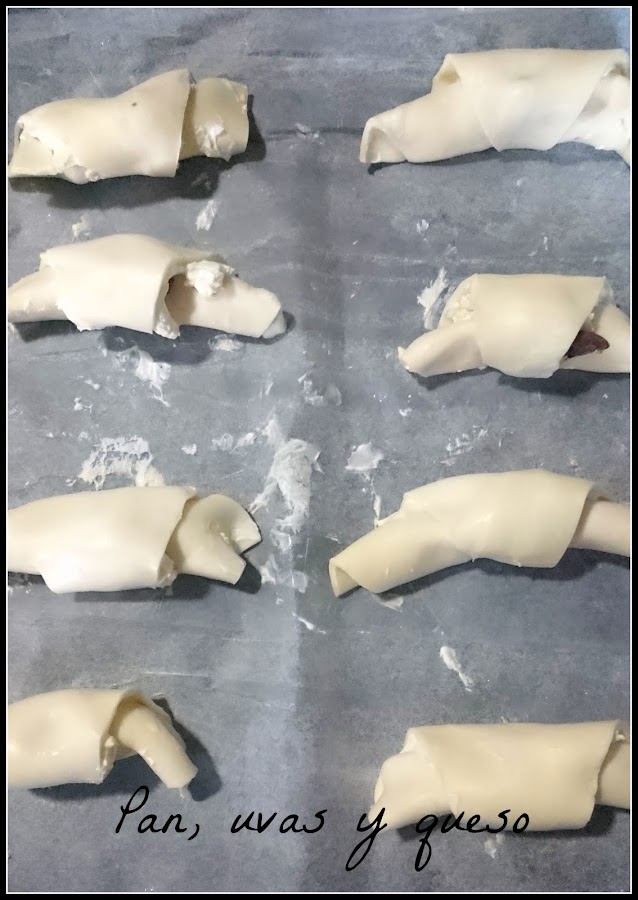 Enrollamos los croissants y los colocamos en la bandeja del horno cubierta con papel sulfurizado.