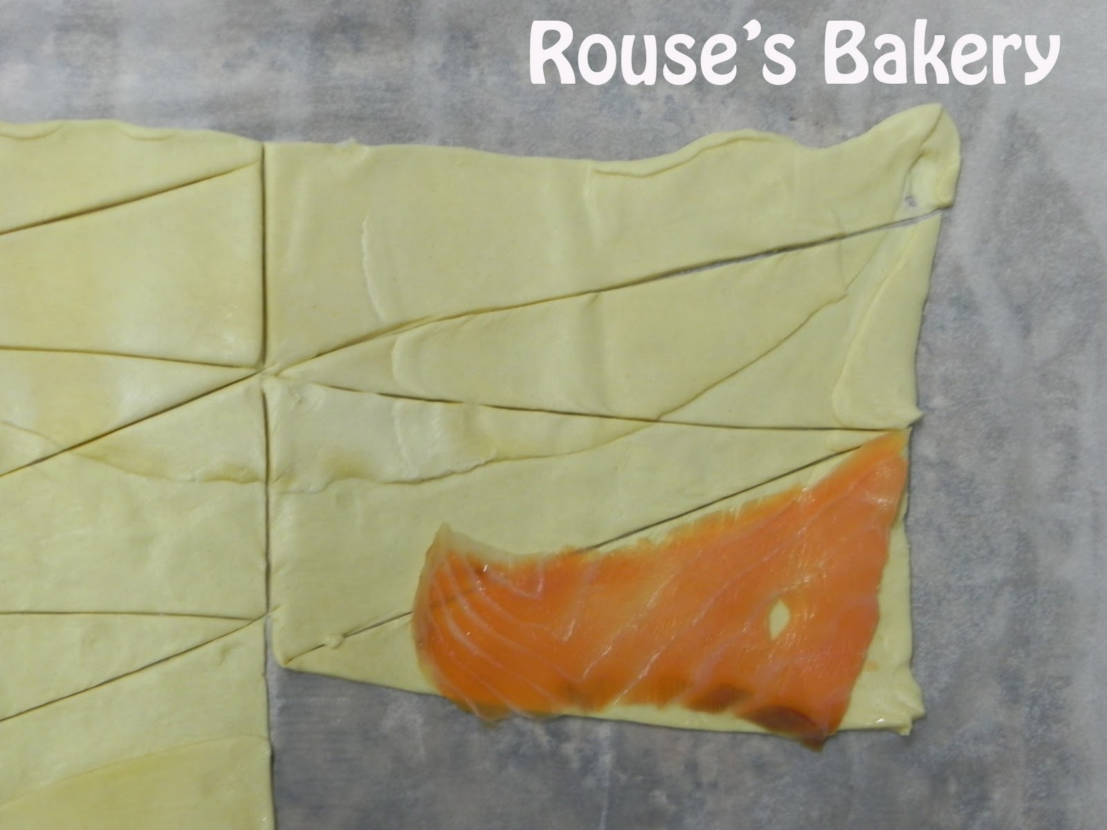 Colocamos el salmón desde la parte más ancha del triángulo hacia la parte más estrecha.