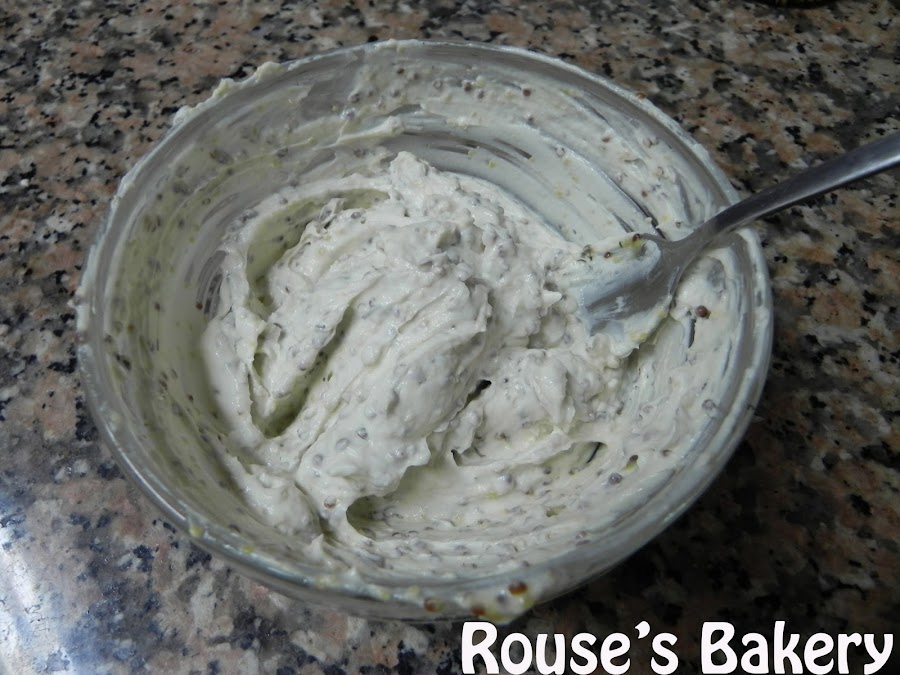 Y como la espera es muy mala pienso ¿y si hago alguna cremita para acompañarlos?. Pues a ello: cogemos el queso de untar en un bol pequeño y le añadimos un par de cucharas de mostaza, yo he usado mostaza antigua (la de las bolitas) porque me gusta más el sabor, que es mucho más suave que la de dijon.