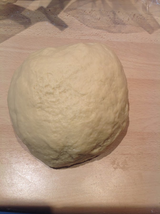 Una vez amasada, hacemos una bola, la metemos en un bol, y la tapamos con un trapo limpio, dejándola levar durante 1 ó 2 horas, hasta que doble su volumen.
