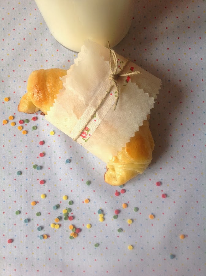 Para este tema, yo elegí unos croissants. Hace un año que vi una receta y los tenía apuntados en mi lista de futuras recetas para hacer. En el blog de La receta de la felicidad, Sandra Mangas nos hace unos croissants con una masa excelente. La verdad es que estoy muy orgullosa de cómo han quedado mis primeros croissants y desde luego, repetiré porque están buenísimos. Tienen un sabor estupendos, son esponjosos y nada pesados, a pesar de la mantequilla que llevan. A todos les encantó cuando los probaron. Les llevé a las chicas del cole de mis hijos, que son encantadoras, para desayunar y me dieron hasta besos y abrazos. Me dijeron que les había alegrado el día con ese desayuno tan estupendo. La verdad es que cuesta tan poco hacer feliz a la gente que deberíamos fomentar más esta actitud. Aunque me gusta recibir, pero dar y que te lo agradezcan así, para mí es suficiente.