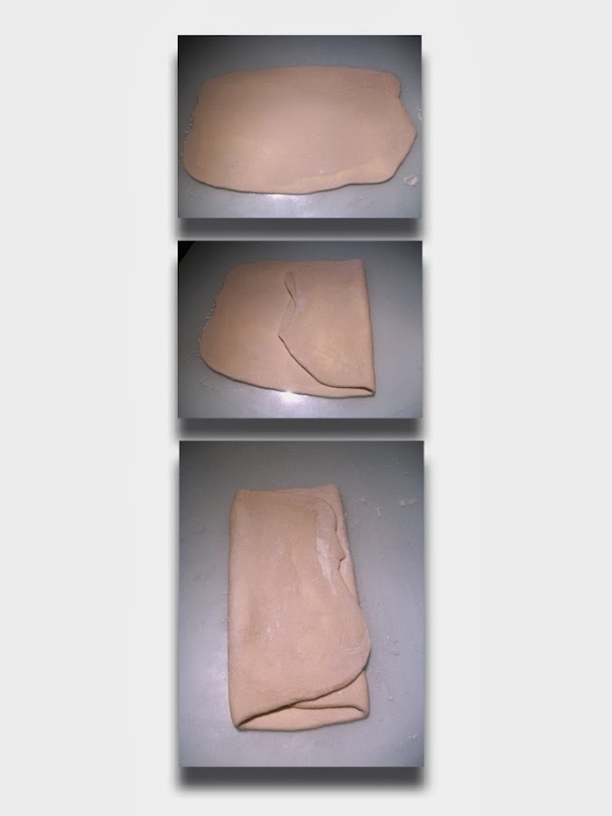 4- Volvemos a plegar la masa como la vez anterior volviendo a hacer el paquete y dejándolo enfriar 10" en la nevera: