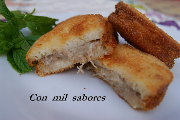 Siempre he admirado a los Astrónomos, eso de descubrir nuevos planetas , estrellas ó constelaciones y ponerle el nombre que a ti te dé la gana es algo chulísimo, ó como los Paleontólogos con cada dinosaurios que desentierran.....Pues hoy os presento una nueva profesión "Receteóloga", pues sí, llevo tiempo dándole vueltas a esto y hoy os traigo la sensación del verano los CROKADILLOS que sin duda alguna harán furor en vuestras fiambreras playeras. Y es la fusión entre una croqueta y un bocadillo..., dos capas de pan jugoso y tierno humedecidos con leche, un relleno de masa de croquetas de carne muy sabroso y un crujientes rebozado.......ya estoy deseando llevármelo a la playa, y vosotros?.