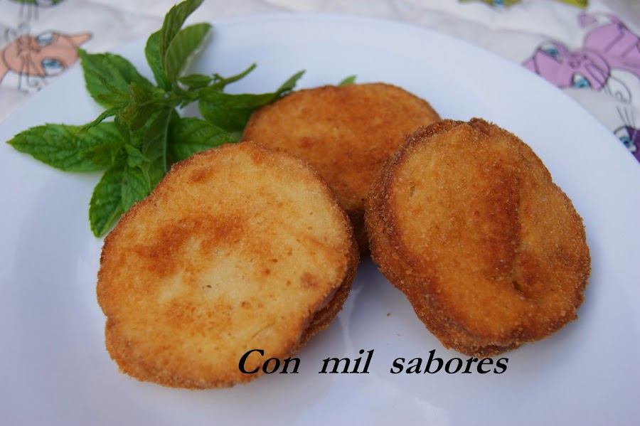 Con un poco de leche pincelamos el pan por ambas caras para que esté más jugoso. Batimos bien los huevos y vamos pasando los crokadillos por ambos lados, primero por huevo y después por pan rallado (como si fuesen croquetas).Los freímos en aceite de oliva calientes, y a disfrutar!!!.