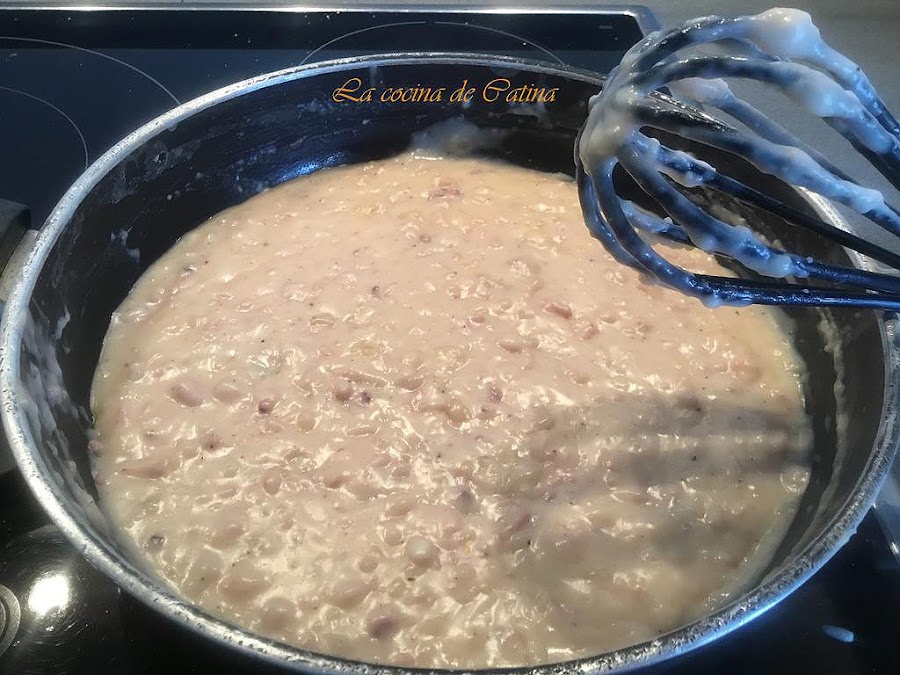 Dejamos que cueza lentamente durante 10 minutos y ya incorporamos el resto de queso rallado. Mezclamos bien y vertemos sobre una fuente, extendiendo la masa para que se enfríe.