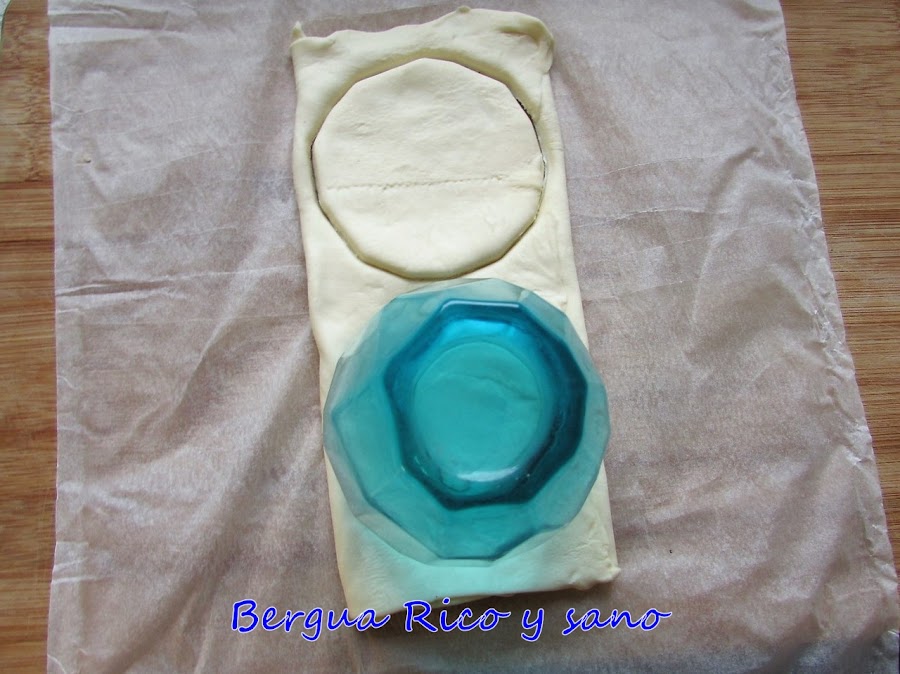 2. Con la cara ancha de un vaso cortamos un círculo; eso será nuestro cronut.