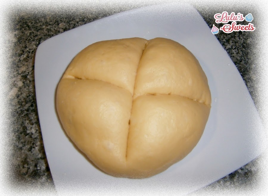 - Una vez pasados los 20 minutos estiramos la masa dándole forma de cruz (siguiendo con el rodillo las marcas de cruz que hicimos ) y dejamos un montículo en el centro.