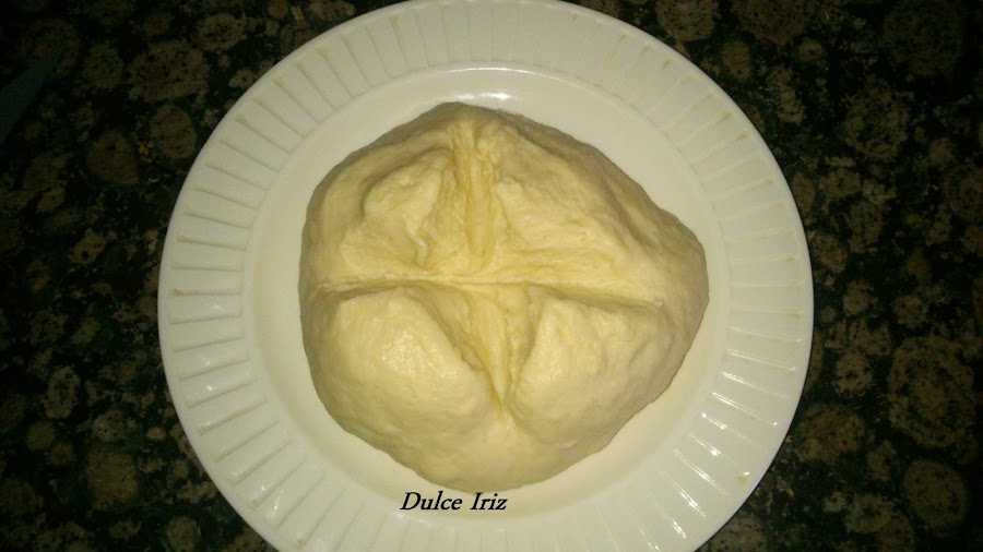 -Pasado el tiempo sacar la masa y enharinar la base de trabajo, poner la masa y estirar formando una cruz y dejando un montículo en el centro de la masa.