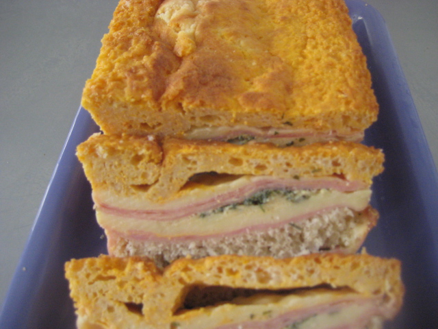 CROQUE CAKE DE JAMÓN Y QUESO Ingredientes para un molde de cake