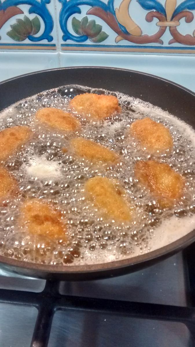 Las freís en aceite de oliva muy caliente hasta que estén doradas por todos lados. Reservad sobre un papel absorbente, y así quitáis el sobrante de aceite.