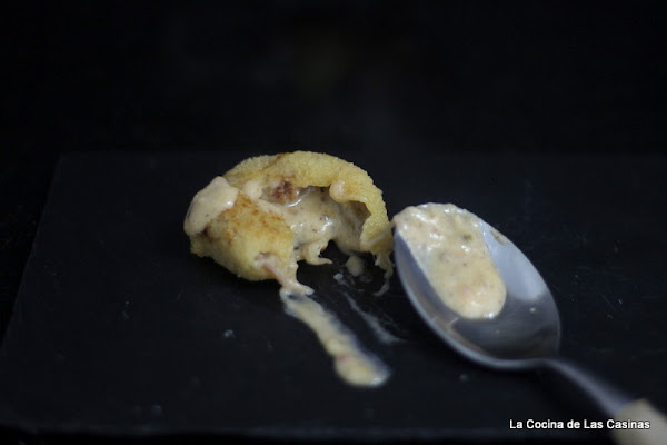 Si se necesita envuelve en un poco más de pan rallado. Vierte en un cazo abundante aceite, el suficiente para cubrir las croquetas. Fríe con cuidado de poco en poco para que no se te desarmen. Retira a un plato con papel de cocina. Y ahora llega el placerazo, ya ves como quedan. Son una delicia. Avisa a tu gente que son líquidas y que tengan cuidado no vaya a ser que se pongan perdid@s, jajaja.