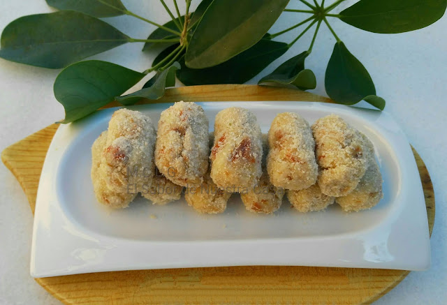 Forma las croquetas, rebozándolas en huevo batido y pan rallado o sólo pan rallado si tienes prisa.